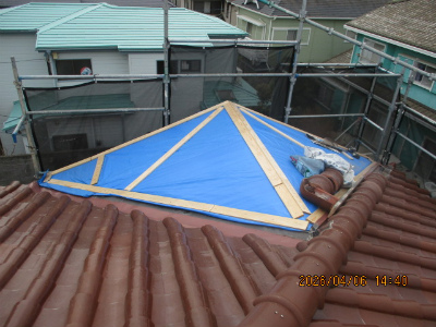 【藤沢市 I様邸】S型瓦 改築工事を行いました。 2026/04/16 新着事例 敷地内に別棟を新築する事になり既存の母屋の改築を行いました。瓦の仕様は、S型瓦 7寸丸 色チョコ。現場は、藤沢市鵠沼となります。 改築中 改築中 屋根施工中 施工後 施工後 施工後