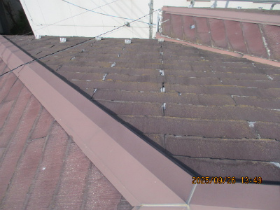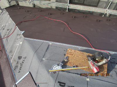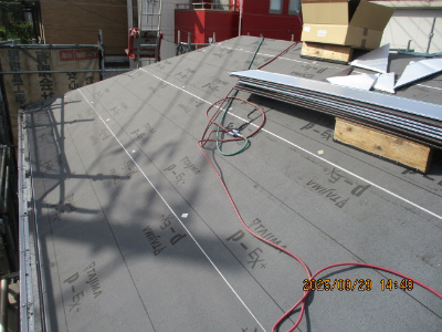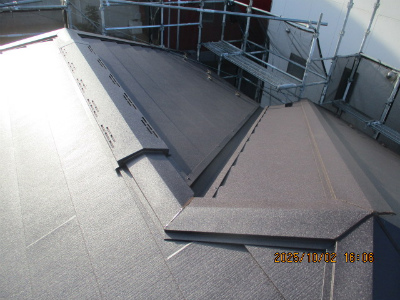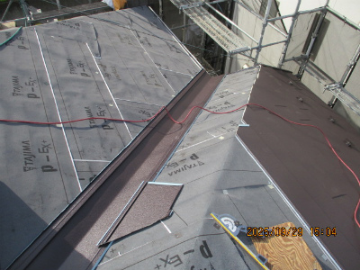 【町田市 S様邸】屋根、外装工事をしています① 2025/10/04 新着事例 築年数18年、経年にて屋根、外壁、雨樋と外廻りの外装リフォーム工事をしています。屋根材は、化粧スレートよりカバー工法にてアイジー工業製(スーパーガルテクト 色シェイドブラウン ガルバリウム鋼板断熱材入り)にて施工。現場は、町田市玉川学園となります。 施工前 施工前 足場架け 下葺き 材料搬入 本谷施工 施工中 施工中 施工中 施工後 施工後 既存雨樋取外し